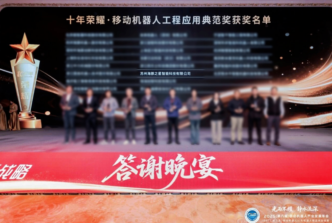 12月3日,在合肥市包河区人民政府、移动机器人产业联盟(CMR产业联盟)与人形机器人场景应用联盟联合主办的 “2025(第八届)移动机器人行业发展年会” 上,备受瞩目的 “十年荣耀·移动机器人本体企业奖” 与 “移动机器人供应链企业奖” 正式颁发。我公司凭借在多个真实场景中稳定、高效、可复制的项目落地成果,荣获 “十年荣耀·移动机器人工程应用典范奖”。